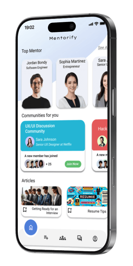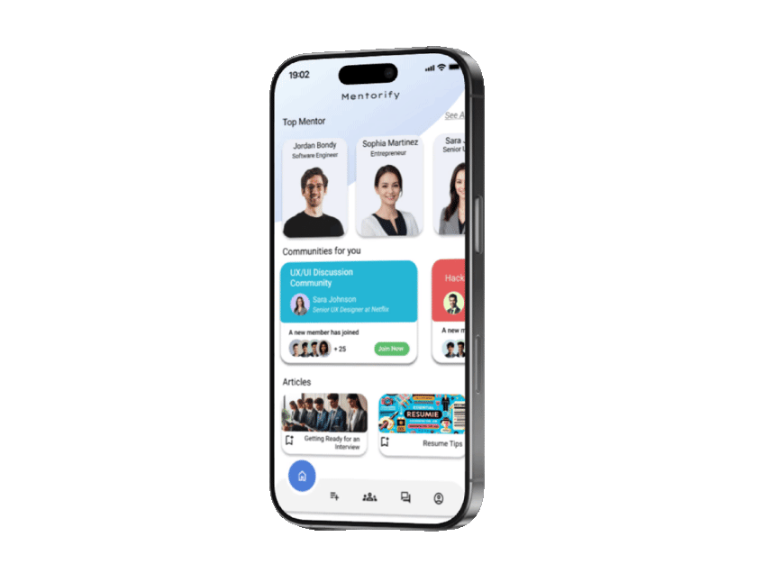 Designed onboarding and recommendation flows for a professional mentorship app, increasing usability test engagement by 30%.