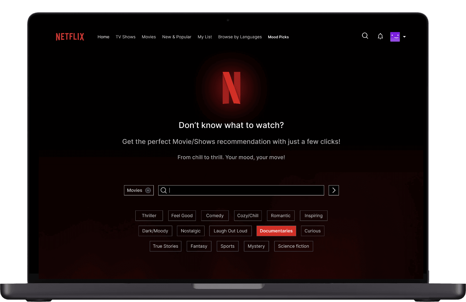 Designed an emotion-based content discovery experience to reduce decision fatigue, with high-fidelity prototypes aligned to Netflix's design system.