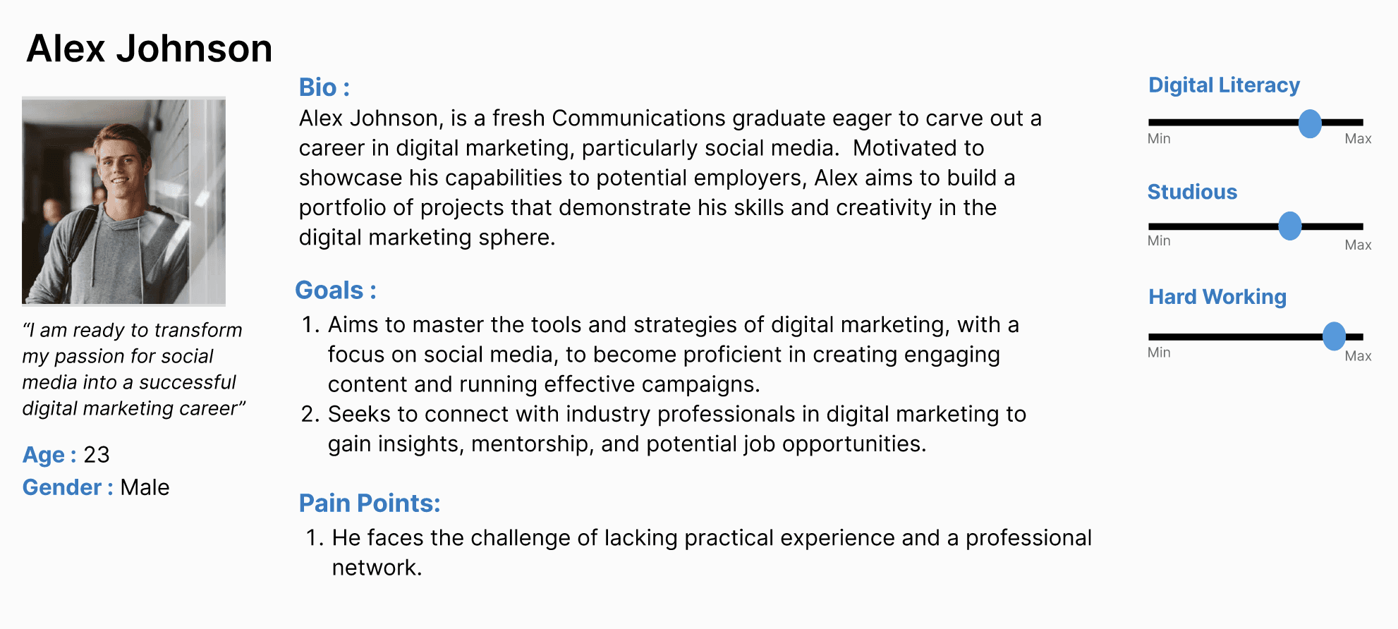 Conduct usability testing with students and early-career professionals to validate the design and gather feedback on clarity and engagement.