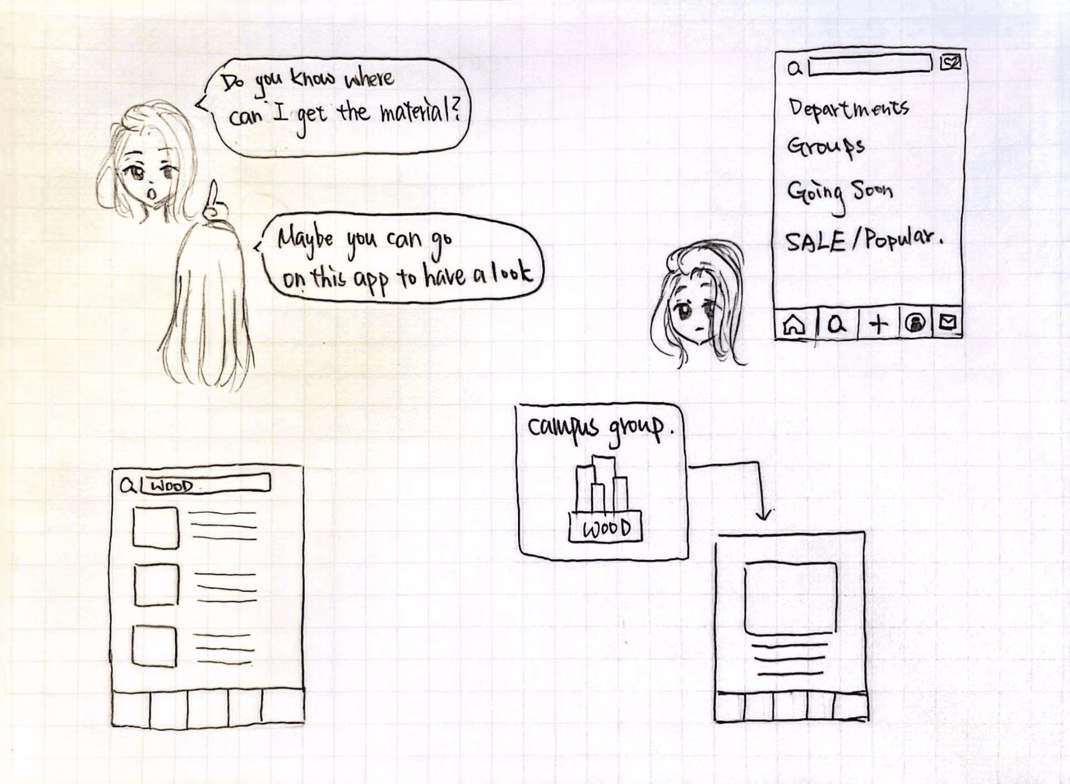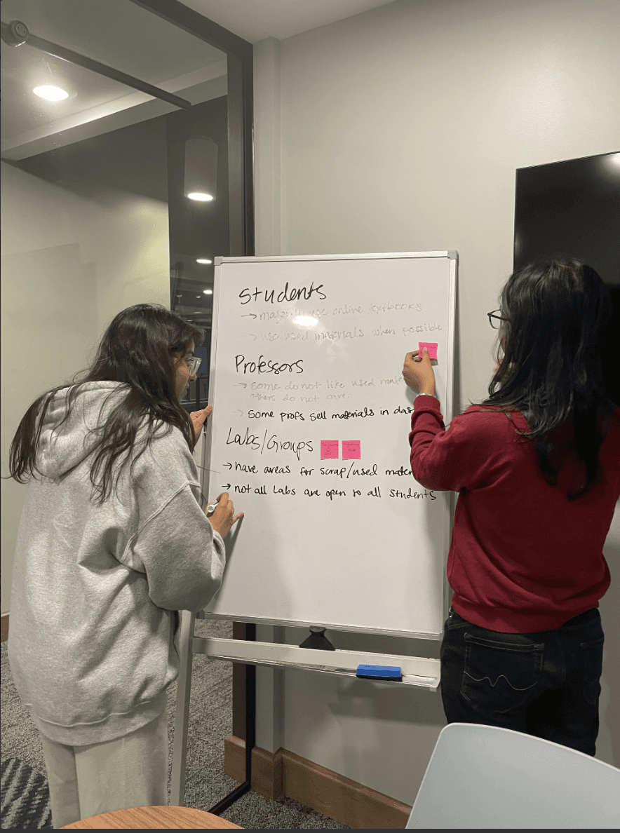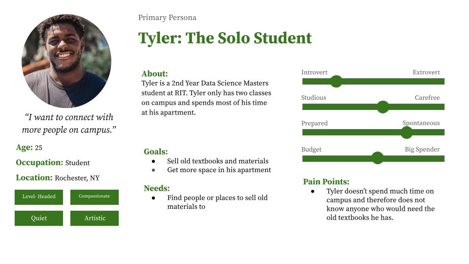 Our primary personas are both students, one would like to get rid of their old class materials, and one needs materials for their class.